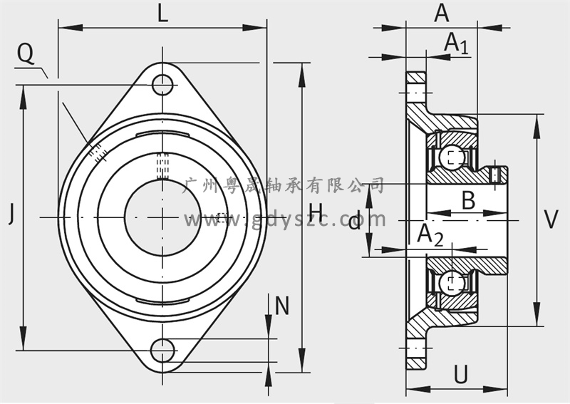 基本参数 型号 PCJTY15 系列 两螺栓法兰式轴承座单元