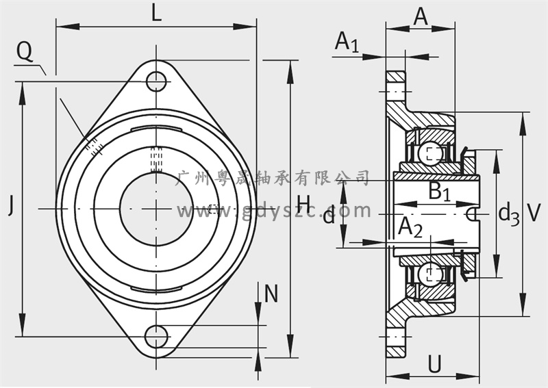 基本参数 型号 RCJTA25-N 系列 两螺栓法兰式轴承座单元