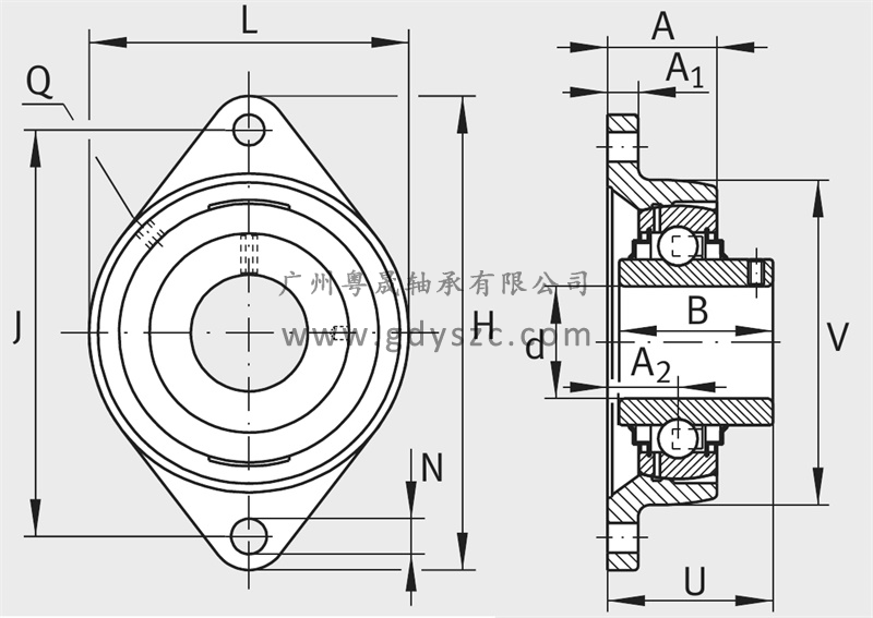 基本参数 型号 RCJTY60-N 系列 两螺栓法兰式轴承座单元