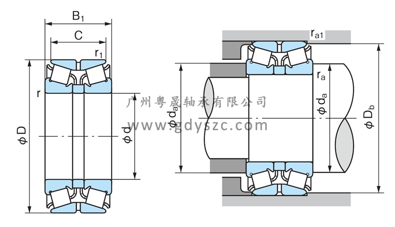 基本参数 型号 180KBE130 系列 双列圆锥滚子轴承(外向型)