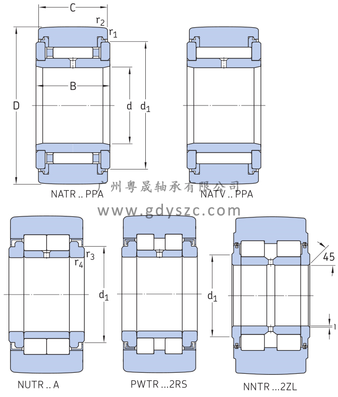 基本参数 型号 NATV50PPA 系列 带挡边、带内圈的圆柱滚子滚轮轴承