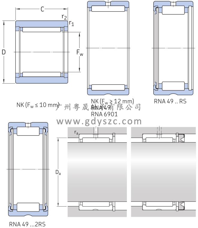 类型: 带机削套圈、挡边、不带内圈的滚针轴承