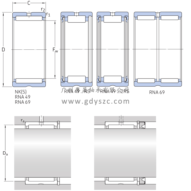 类型: 带机削套圈、挡边、不带内圈的滚针轴承